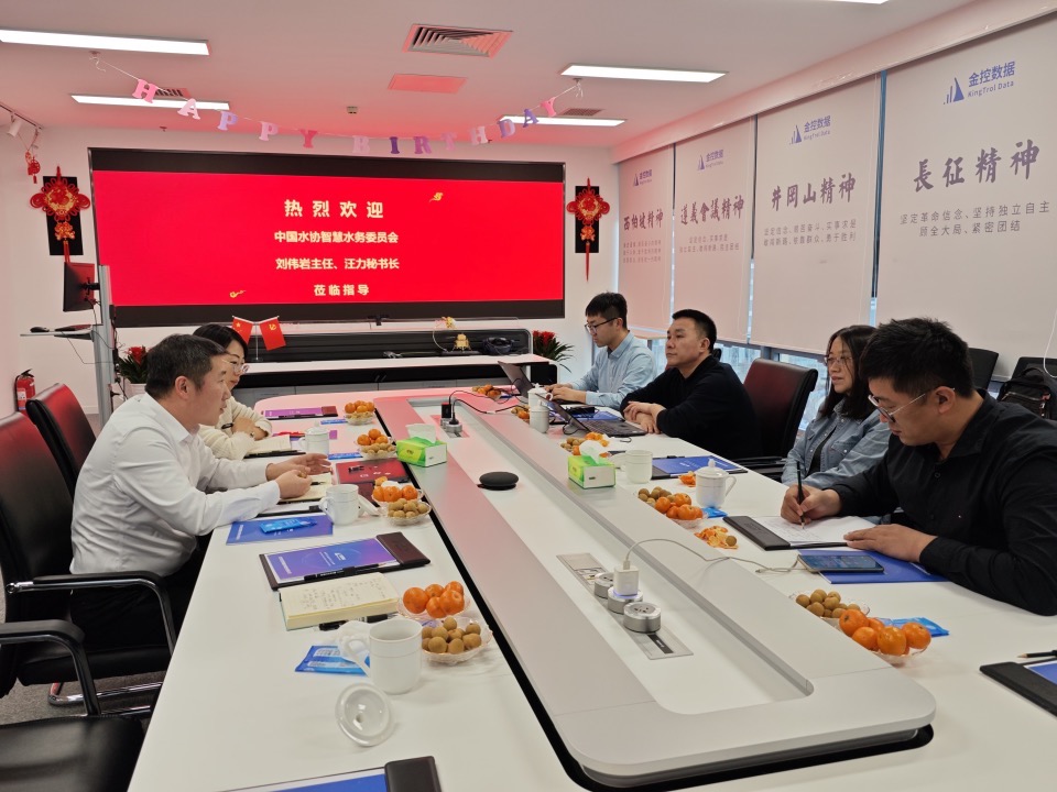 2024年2月,中國水協(xié)智慧水務(wù)專委會(huì)劉偉巖主任、汪力秘書長等領(lǐng)導(dǎo)蒞臨金控?cái)?shù)據(jù)考察調(diào)研。